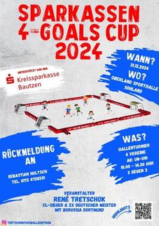 Wir laden alle Fußballinteressierten als Zuschauer zum 4-Goals-Turnier am 21. Dezember in die Oberlandsporthalle nach Sohland ein. In einem Turniermodus mit Hin- und Rückrunde, spielen vier Teams im 3 gegen 3