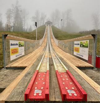 Neben der Loipenpflege stand in diesem Jahr auch unsere große Sprungschanze K28 im Mittelpunkt. Um weiterhin Sprungwettkämpfe durchführen zu dürfen, mussten Anpassungen aufgrund neuer Sicherheitsvorschriften vorgenommen werden. Dafür wurde der gesamte Anlauf auf ein einheitliches Höhenniveau gebracht, um im Falle möglicher Stürze das Verletzungsrisiko zu minimieren. Ein besonderer Dank gilt hier erneut Steffen Schirner, der uns mit der Bereitstellung des dafür notwendigen Lärchenholzes maßgeblich unterstützt hat.