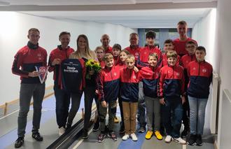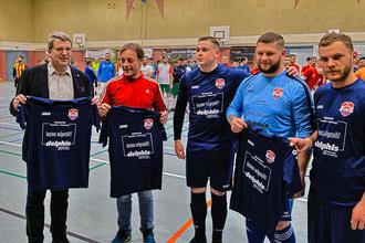 Vor dem Turnierbeginn, bedankten sich die Spieler und der Verein bei Steffen Schirner, Inhaber der Firma Möbeltischlerei & Innenausbau Schirner, für das Sponsoring der neunen Trainingsanzüge bzw. für die Unterstützung und die Namensgebung des Hallenturniers.