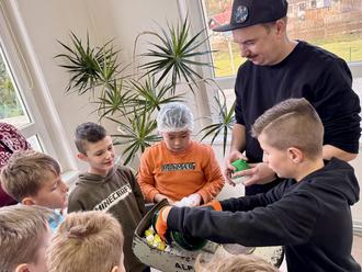Im Workshop gab es für die Schülerinnen und Schüler der vierten Klassen aus Sohland und Cunewalde einiges zu lernen und zu entdecken: Nämlich nicht weniger als die Entstehung eines neuen Produkts aus Plastikmüll! Die Teilnehmer:innen konnten selbst gesammelte und mitgebrachte Kunststoffdeckel im Schredder zerkleinern, Wunsch-Farbmischungen aus Kunststoffgranulat zusammenstellen und zu einem individuellen Batch werden lassen – mit eigener Muskelkraft und einer selbstgebauten Handspritzmaschine. Das Ergebnis wurde an einem Cap befestigt und konnte dann stolz mit nach Hause genommen werden.