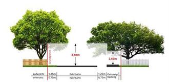 Um Fahrzeugen und Personen ein gefahrloses Passieren von Straßen, Wegen und öffentlichen Plätzen zu ermöglichen, ist der Lichtraum entsprechend frei zu halten. Wir fordern daher alle Eigentümer von Anpflanzungen jeglichen Art auf, durch Freischneiden des Lichtraumprofils einen verkehrssicheren, sowie gefahren- und hindernisfreien Zustand der Straßen, Fußwege und öffentlichen Plätze herzustellen.
