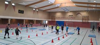 Donnerstag waren „die Großen“ dran – 31 Jugendliche im Alter von 13 bis 16 Jahren stellten sich vier knackigen Einheiten, bei denen der Fokus auf Koordination, Reaktion, Passgenauigkeit und den einzelnen Spielpositionen lag.