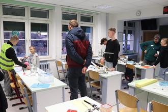 Am 29.01.25 war es wieder soweit. In der Zeit von 14.00 bis 17.00 Uhr öffneten wir für alle Interessierten unsere Türen zum Tag der Tür und freuten uns über die rege Teilnahme, denn das geschmückte Schulhaus war mit Leben gefüllt. Neben der Möglichkeit das Schulhaus samt Fachkabinetten besichtigen zu können, einen Einblick in die vielfältigen Arbeiten der verschiedenen Fächer und unserer Ganztagsangebote zu bekommen, konnten sich die Besucher bei fachspezifischen Mitmachangeboten auch selbst ausprobieren oder die Arbeit mit einer elektronischen Tafel testen. Für das leibliche Wohl sorgten neben einem Eltern- Schüler-Kaffee im Schulhaus auch eine Grillstation auf dem Schulhof. An dieser Stelle möchten wir einen großen Dank an die Elternschaft für die vielen gebackenen Kuchen und die große Unterstützung im Kaffee und am Grill aussprechen.