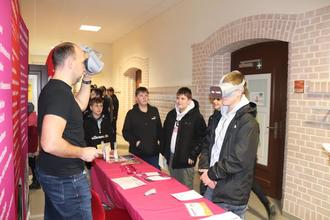 Im Rahmen der Berufsorientierung fand an diesem Tag zum wiederholten Mal eine Berufsorientierungsmesse statt und bildete damit einen besonderen Höhepunkt an diesem Tag. Hierfür konnten wir in diesem Jahr 20 Unternehmen gewinnen und so Schülern und Eltern einen breiten Einblick in regionale und überregionale Ausbildungsmöglichkeiten bieten. Ein besonderer Dank geht deshalb auch an die Vertreter der ausstellenden Unternehmen und der Organisatoren von Onkel Sax, die mit viel Herzblut die vielen Fragen unserer Schüler beantworteten.