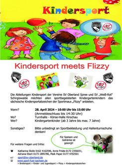 Der SV Oberland Spree und der SV "Weiß-Rot" Schirgiswalde laden am 28.04.2024 alle sportbegeisterten Kindergartenkinder im Alter von 3 bis 7 Jahren in die Körse-Halle nach Kirschau ein, um das sächsische Kindersportabzeichen "Flizzy" abzulegen.