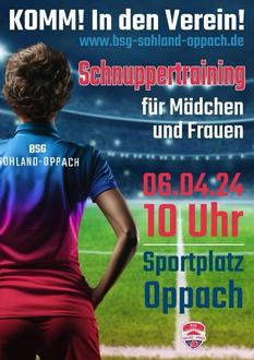 Wir laden recht Herzlich alle fußballbegeisterten Frauen und Mädchen zu einem Schnuppertraining am 06.04.2024 ab 11:00 Uhr auf den Rasenplatz nach Oppach, Lindenbergerstraße 33b ein.