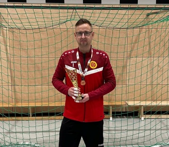 Unser Torhüter Thomas „Chappa“ Hehlmann von den alten Herren feierte am Wochenende vom 15./16. Februar 2025 einen großartigen Erfolg in Dortmund. Bei der Deutschen Futsal-Meisterschaft Ü40 für Gehörlose sicherte sich sein Team die Bronzemedaille. In einem starken Teilnehmerfeld von 14 Mannschaften erreichten sie einen hervorragenden 3. Platz. Wir freuen uns mit Thomas über diesen tollen Erfolg und gratulieren herzlich zu dieser starken Leistung!