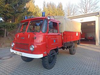 | Ausstattung / Sonstiges: | 5-Gang-Schaltgetriebe, Lederlenkrad, Pritsche mit Plane, tlw. Feuerwehrausstattung, altersbedingte Gebrauchsspuren, fahrtüchtig |