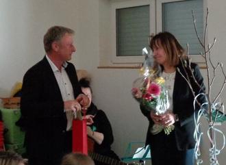 Manchmal hatte man das Gefühl, Sabine Bürger sei mit dem Kindergarten verheiratet, besonders zu Corona- Zeiten. Immer wieder kamen kurzfristig neue Bestimmungen raus, auch das meisterte sie mit Bravour und sorgte bei allen Eltern, Kindern und Erziehern für einen reibungslosen Ablauf. Für all das wollen wir, das Team der AWO-Kita „Haus am Wald“ uns heute bei Frau Bürger bedanken. Jetzt liebe Sabine Bürger, ist die Zeit gekommen, auch mal an Dich zu denken: Ruhe und Zeit zu genießen, die Welt erkunden und viel Spaß mit deiner Familie zu haben. Wir wünschen Dir für deinen Ruhestand alles Gute und vor allem Gesundheit. Freude und Spaß mögen deine ständigen Begleiter sein.