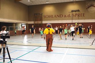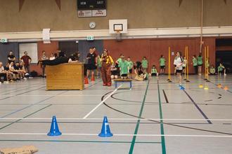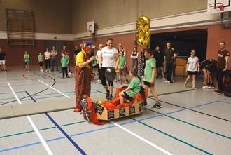 Am Ostersamstag fand das Osterfest unter dem Motto „Groß gegen Klein“ statt. Wir Spatzen waren über mehrere Wochen im Training eifrig bei der Sache und hofften gegen die Eltern im Wettstreit zu bestehen. Als unparteiischen Schiedsrichter hat unser Trainerteam extra Pinto den Clown eingeladen. Das war schon zu Beginn ein großer Spaß. Noch bevor es richtig los ging, wurde einem Spatz zum 8. Geburtstag gratuliert. Mit dem Piratenschiff ging es ab durch die Halle, um die Schatztruhe zu finden. Aus dieser bekam dann jeder die obligatorischen Gummibärchen. Nun konnte es aber richtig los gehen. Nach der gemeinsamen Erwärmung kam es auch schon zum ersten Countdown. Die erste Disziplin war Tauziehen. Eine sicher geglaubte Beute für die Erwachsenen. Aber es sollte anders kommen. Da die Großen ja viel größere Füße haben und dadurch eine bessere Standfestigkeit aufweisen als die Spatzen, musste dieser Vorteil wegen der Chancengleichheit korrigiert werden. Pinto ließ also alle Erwachsenen auf einem Bein stehen. Es war lustig anzusehen wie einer nach dem anderen aus dem Gleichgewicht gebracht wurde und die Spatzen als Sieger feststanden. Auch bei den vielen anderen Stationen und Parcours waren kleine Anpassungen nötig. Zum Schluss stand es 8 zu 2 für die Spatzentruppe. In der Kaffeepause überraschte uns noch der Osterhase. Und wie es üblich ist, hatte er für alle etwas im Körbchen. Ein großer Dank gilt allen Eltern die vollzählig und mit vollem Einsatz dabei waren. Nur so konnte es für alle ein schöner und gelungener Samstagnachmittag werden. Wir freuen uns schon auf unser Abschlussfest im Juni. Mal sehen ob wir wieder was Tolles berichten können.