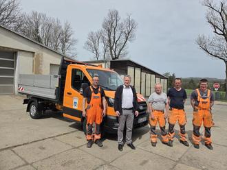 Am 17.04.2025 erfolgte die Übergabe des neuen Bauhof-Fahrzeuges durch unseren Bürgermeister Hagen Israel an die Mitarbeiter des Bauhofes. Bei dem Fahrzeug handelt es sich um einen Ford Transit 350 L2 4x4 mit Drei-Seiten-Kipper. Dieser wurde als Ersatz für das in die Jahre gekommene Fahrzeug beschafft.