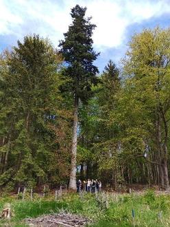 Am 28. April 2024 veranstaltete der Freundeskreis Waldpädagogisch-Forsthistorisches Zentrum der Oberlausitz e.V. im Rahmen der landesweiten Aktion einen Frühlingsspaziergang zum Flächennaturdenkmal Hohe Tannen im Friedersdorfer Wald („Sauers Busch“) am Herrenweg an der Wilhelmshöhe bei Friedersdorf. Die Führung übernahm Vorstandsmitglied und Besitzer des Waldes Herr Michael Hörenz aus Sohland. Teilgenommen haben 17 interessierte Bürger, Berufskollegen und Waldbesitzer. Herr Hörenz stellte die Ergebnisse der Bewirtschaftung seines Waldes nach Sturmschaden und Borkenkäferbefall dar und zeigte die prachtvolle Verjüngung aus Buche, Weißtanne und Fichte. Er betonte, alle Arbeiten ohne Förderung mit Unterstützung der Familie vorgenommen zu haben, aus Liebe zum Wald und zur Natur. Besonders beeindruckt haben die mächtigen Alttannen, eine Seltenheit in der Oberlausitz. Herr Hörenz dokumentiert diese Baumart im Bergland bereits seit vielen Jahren und pflegt und schützt die Verjüngung auch in Absprache mit den Waldbesitzern.