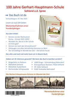 Endlich ist es so weit: das Buch zur über Hundertjährigen Geschichte unserer Gerhart-Haupt-Schule Sohland ist da. Diese Sammlung von „Momentaufnahmen einer Hundertjährigen“ hat viele Schöpfer und Mitwirkende. Ein herzliches Dankeschön an alle fleißigen Chronisten, Sammler und Schreiber, die in ihren Zeitzeugenbefragungen so viele Momente und Erzählungen unserer Hundertjährigen eingefangen haben.