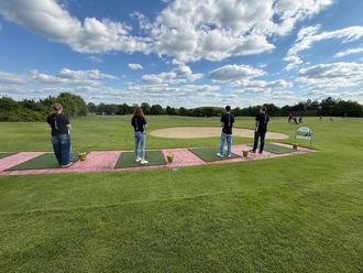 Der Nachmittag begann sportlich – jedoch einmal ganz anders als gewohnt. Bei einer Schnupperstunde Golf erhielten die vier Preisträger eine Einführung durch einen erfahrenen Trainer und konnten sich in dieser für sie ungewohnten Sportart ausprobieren. Mit viel Neugier und Spaß gingen sie ans Werk und bewiesen, dass sie auch abseits des Spielfelds sportliches Talent mitbringen.