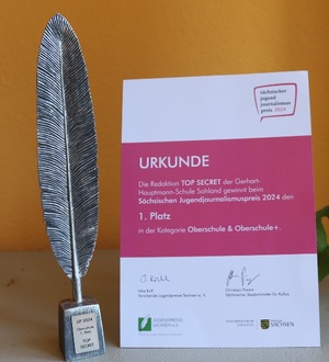 Wieder ein Schuljahr geschafft! Für unsere Schule war es ein gutes Jahr, versehen mit vielen Höhepunkten. Die letzten fünf Schultage waren mit Veranstaltungen verschiedenster Art für unsere Schule sehr abwechslungsreich. Wir hatten das Theater Radix aus Berlin zu Gast, die sportlichste Klasse wurde ermittelt, herzlichen Glückwunsch an die Klasse 7b. Unsere Abgangsklassen erhielten im feierlichen Rahmen ihre Zeugnisse im Pachterhof. Mit Unterstützung des Schulfördervereins haben wir im Wehrsdorfer Bad einen wunderschönen Vormittag verbracht. Die Redaktion unserer Schülerzeitung „Top Secret“ hat beim sächsischen Jugend Journalismus Preis den 1. Preis in der Kategorie Oberschule erhalten. „In der Sieger-Zeitung steckt ein gelungener Mix aus Neuigkeiten zu Schulalltag und selbst gesetzte Themen aus dem Leben der Schülerschaft.... „ (aus der Laudatio). Herzlichen Glückwunsch an Frau Worm und ihr Team!