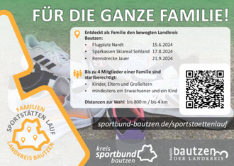 Nach heutigem Stand findet am Samstag, den 17.08.2024 ein Familienlauf im Sparkassen-Skiareal statt. Die Streckenlängen sind ideal für Familien, einschließlich solcher mit kleinen Kindern. Ziele des Ganzen sind, Familien ein gemeinsames, sportliches Erlebnis zu bieten, Kinder mit Spaß an Sport heranzuführen und besondere Sportstätten im Landkreis Bautzen kennenzulernen. Ausrichter ist der Kreissportbund (KSB) Bautzen. Nähere Informationen dazu auf den Internetseiten des KSB Bautzen und vom Skiclub Sohland, soweit uns diese vorliegen.