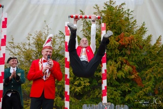 Anschließend marschierten wir Richtung Markt, auf dem wir von zahlreichen Schaulustigen bereits erwartet wurden. Pünktlich um 11:11 Uhr konnten wir dann vom Bürgermeister Sven Gabriel den Rathausschlüssel in Empfang nehmen. Bei der alljährlichen Stadtwette konnte sich der SFC diesmal in den Disziplinen Schwimmärmel aufblasen, Durchhaltevermögen an der Reckstange beweisen, Sangria mixen, Sandburg bauen sowie Pop-Up-Zelt zusammenfalten, durchsetzen. Für seine verlorene Wette wurde der Bürgermeister vom SFC beauftragt, den „Heimat- und Geschichtsverein“ bei der Sanierung des Stadtgefängnisses tatkräftig zu unterstützen.