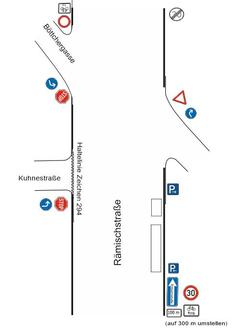 Der Ortschaftsrat hat sich in mehreren Sitzungen mit der Verkehrssituation auf der Rämischstraße beschäftigt. Es geht um zwei Anliegen: zum einen um die Verkehrs- und Parksituation und die daraus resultierenden Risiken der Verkehrsteilnehmer und zum anderen um die Belastung der Anwohner durch die Lautstärke. Als kurzfristige Maßnahme hat der Bauhof im letzten Herbst die Fugen auf dem Straßenbelag aufgefüllt, um den Lärmpegel etwas zu minimieren. Zudem hatte der Ortschaftsrat die Gewerbetreibenden und Anwohner eingeladen, um im Rahmen einer Ortschaftsratssitzung verschiedene Varianten und Lösungsansätze zu diskutieren. Eine Einbahnstraßenregelung stellte sich dabei als Favorit heraus. Diese sieht eine Fahrtrichtung vom Markt zum Marienplatz vor, wobei die Einbahnstraßenregelung bis zum Viadukt gelten soll. Dies bedeutet, alle Zufahrtsstraßen sind ebenfalls nur in Richtung Marienplatz befahrbar. Eine Ausnahmeregelung für Radfahrer sollte jedoch ermöglicht werden. Die ausgewiesenen Parkbuchten zeitlich zu begrenzen, ist ebenfalls nochmals zu diskutieren, genauso wie eine Geschwindigkeitsbegrenzung. Anhand der Skizze können Sie den aktuellen Vorschlag sehen. Der Ortschaftsrat lädt Sie darüber hinaus ein, an einer weiteren Besprechung zu diesem Thema am 28.02.2023 in der Ortschaftsratssitzung teilzunehmen.
