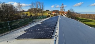 Trotz dessen, dass bereits bei der Planung der Dachsanierung über die Ertüchtigung des Daches für eine spätere Installation von Photovoltaikmodulen nachgedacht und auf Grund der zu geringen statischen Reserven für herkömmliche Photovoltaikmodule verworfen wurde, wurde das Thema Photovoltaik nochmal ins Auge gefasst. Nach umfangreicher und zeitaufwendiger Recherche wurden Module gefunden, welche nur einen kleinen Teil des Gewichtes von herkömmlichen PV-Modulen aufweisen und vorrangig auf sehr großen Dächern von Fabrikhallen installiert werden.