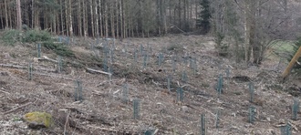 An einem Freitagnachmittag haben wir gemeinsam mit Kindern und Jugendlichen Erlen und Weißtannen gepflanzt und mit entsprechenden Baumschutznetzen geschützt, um die Flächen in den nächsten Jahrzehnten wieder bewaldet zu sehen.