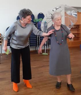 Nicht nur die Frauen aus Eibau präsentierten die aktuelle Frühjahrs- und Sommerkollektion, sondern auch unsere „Urgesteine“ des Ortes. Das kam natürlich bei allen Anwesenden großartig an und wurde mit viel Beifall belohnt. Im Anschluss konnten wir im kleineren Raum nebenan die Sachen und Stoffe anfassen, probieren und auch kaufen. Dies wurde rege genutzt. Als Abschluss gabs für alle noch ein Weinchen oder Sektchen.