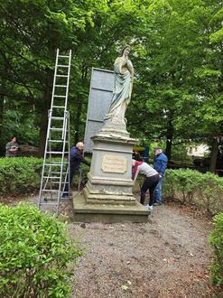 Neues Leben zieht ins Schloss am Pius-Park ein: Familie Kramer aus Dresden hat das historische Anwesen erworben und renoviert es mit viel Gespür für Geschichte. Ein sichtbares Zeichen dafür ist die Wiederherstellung der Marienstatue, die jahrelang unter einer Blechhaube verborgen war.