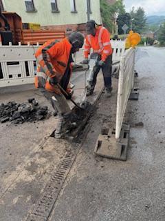 Aufgrund der extrem hohen Belastung durch den Transport des Käferholzes in Crostau, musste die Straßeneinlaufrinne zur Zufahrt auf die Isabella Grundhaft erneuert werden.