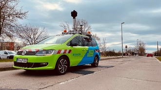 Bei der Straßenbefahrung werden die Bestimmungen des Datenschutzes konsequent eingehalten. Personenbezogene Daten, wie Gesichter und Kfz-Kennzeichen, werden automatisiert unkenntlich gemacht.