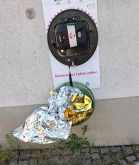 Der Defibrillator am Standort der ehemaligen Rettungswache in Kirschau