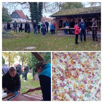Bereits am Vortag trafen sich die Mitglieder des Heimatvereins, um gemeinsam zu schneiden, zu rühren und zu belegen. In geselliger Runde wurde geschnippelt, gelacht und probiert – und so entstanden nicht nur die altbewährten Klassiker, sondern auch eine kleine vegetarische Überraschung: Erstmals gab es eine vegane Variante, die kostenlos verkostet werden durfte. Das neue Rezept mit Fenchel kam gut an und zeigte, dass Tradition und Innovation in Döllnitz wunderbar zusammenpassen.
