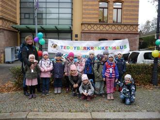 Deshalb hatten wir, die Kinder der Storchentruppe, die Möglichkeit, zur Behandlung nach Halle in die Teddybärklinik zu fahren.