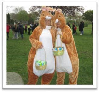 Traditionell eröffneten unsere Osterhasen das Eiersuchen, für die Größeren und