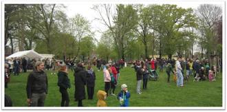 Trotz nachwievor grauem Himmel: als unsere Hasen loshoppelten, um die vielen bunten Eier zu verstecken, füllte sich auch der Platz.