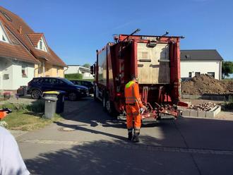 Die Straßen im Wohngebiet „Am Wachtberg“ sind in den 1990er Jahren sehr schmal geplant worden. Als noch der Großteil der Grundstücke unbebaut war, merkte man dies in Bezug auf Parkmöglichkeiten oder Mülltonnenentleerung noch nicht. Doch seitdem immer mehr Flächen bebaut und von ihren Eigentümern eingefriedet werden, ändert sich das. So fehlen nun Brachflächen zum Parken und zum Manövrieren der Entsorgungsfahrzeuge. So gab es am 30.05. um 8 Uhr einen Vor-Ort-Termin mit Vertretern des Umweltamtes Saalekreis, des Ordnungsamtes Schkopau, der Entsorgungsgesellschaft Saalekreis (EGS), der Abfall-Logistik Leipzig GmbH und mir im Auenblick. Diese Straße ist eine Sackgasse und die Fahrzeuge haben wegen parkender Autos und den neuen Einfriedungen Probleme, am Ende der Straße wenden zu können. Mit knapp 250m Länge ist die Straße zu lang, um rückwärts in die Straße einfahren zu dürfen. Wobei rein rechtlich eigentlich in keine nach 1990 gebaute Sackgassenstraße die Entsorgungsfahrzeuge einfahren dürfen. Auch wenn die Entsorger da bei kürzeren Straßen bisher etwas kulanter waren, drängen die zuständigen Berufsgenossenschaften aus Gründen des Unfallschutzes auf die Einhaltung dieser Vorschriften. Um die örtlichen Problemlagen zu veranschaulichen, wurde die Straße an dem Tag mit einem Müllfahrzeug befahren und die Stellen gezeigt, bei denen es Probleme gibt, die es vorher nicht gab. Bis Ende Juni haben wir nun mit den Anwohnern Zeit auszuloten, ob eine Lösung für die Engstellen gefunden werden kann. Wenn nicht, wird der Landkreis einen Sammelpunkt für die Müllentsorgung an der Kreuzung Auenblick/Von-Haake-Straße benennen, an den die Anwohner ihre Mülltonnen am Tag der Entsorgung abzustellen haben.