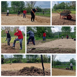 Nach einer kurzen Pause wurden die letzten Kraftreserven noch einmal mobilisiert und die gesamte Beachfläche glatt gehakt sowie das Unkraut aus der zuvor gegrubberten Rasenfläche entfernt. Im Zuge der parallel verlaufenden Rasenregeneration auf dem Fußballplatz konnte unser Greenkeeper auch hier gleich Saatgut aussäen. Nun heißt es: Gras drüber wachsen und beim nächsten Sonnenschein die Skyballs fliegen lassen… :-)
