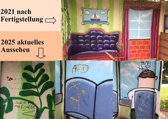 Leider wurden nun nach und nach diese farbenfrohen Bushaltestellen mutwillig und sinnlos auf Dauer zerstört!
