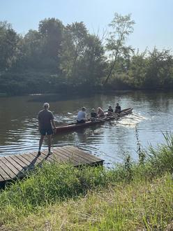 Am Dienstag und Mittwoch der zweiten Schulwoche trafen wir uns um 8 Uhr mit Frau Schmid vom Ruderverband am Bootshaus der Rudergesellschaft Merseburg. Bei angenehmen morgendlichen Temperaturen wurde uns zuerst erklärt, wie man die einzelnen Teile der Boote benennt. Daraufhin teilten wir uns in 5 Gruppen auf. Die erste Gruppe begann im Kraftraum am Ruderergometer. Die zweite Gruppe absolvierte einen kleinen Kraftzirkel mit Situps, Hockwenden über die Bank, Gewichtheben und Seilspringen. Die dritte Gruppe übte im Wasserbecken in einem Viererboot. Eine Gruppe ging direkt mit einer Kollegin von Frau Schmid auf die Saale. Die letzte Gruppe übte mit Hilfe von Karten die Beschriftung der Bootsteile. Zum Abschluss des Programms machten wir in unseren Gruppen eine Staffel am Ergometer (Wer kommt am weitesten, wenn jeder 1 Minute rudert?) Am zweiten Tag wurden die Kenntnisse, die wir erworben hatten, abgefragt.So mussten wir auswendig die Teile des Botts benennen und 1000 m auf Zeit am Ergometer rudern. Beides für unsere Sportnoten. Wir bedanken uns ganz herzlich bei Frau Schmid und ihren Kollegen, die die zwei Tage toll für uns vorbereitet und durchgeführt haben. Vielleicht wählt ja doch der ein oder andere Rudern als Vereinssportart. Es waren auf alle Fälle zwei tolle, wenn auch manchmal anstrengende Tage.