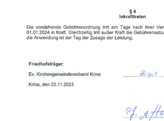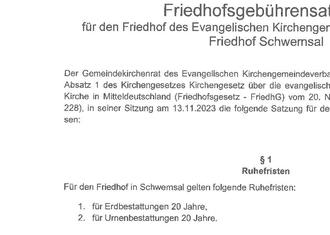 Die für eine Bestattung erforderlichen Unterlagen müssen bei einer Erdbestattung bis spätestens 3 Werktage und bei Urnenbestattungen mindestens 7 Werktage vor der Bestattung bei der Friedhofsverwaltung vorliegen.