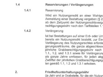 | a) Erdbestattungen Einzelgrab: | = | Länge 2,00 m; Breite 0,80 m |