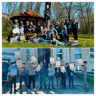 Gemeinsam mit den 3. Klassen der Grundschulen Rösa und Friedersdorf konnten erlebnisreiche Naturbildungs- und Mitmachtage gestaltet werden. In mehrere Gruppen aufgeteilt, lernten die Kids allerhand über Fledermäuse, den Schutz von Tieren und die Abläufe in der Natur. Dabei wurden in kleinen Teams Fledermauskästen gebaut, Patenschaften für die jeweiligen Kästen vergeben und diese anschließend im Park Rösa, im Zuge der Kirche Friedersdorf sowie um den Bereich Herrenhaus Muldenstein und Zur Luther Linde montiert, wo der Schwerpunkt der Eichenprozessionsspinnervorkommen in unserer Gemeinde ist. Da (unter anderem) Fledermäuse natürliche Fressfeinde der Falter sind, brachten wir die viele Kästen dort an, welche als Präventionsmaßnahme wirken sollen. Eine echte Fledermaus hautnah sehen und ganz kurz berühren zu dürfen, war für viele Kinder ein großes Ereignis.