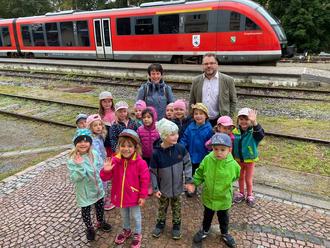 Gemeinsam mit Bürgermeister Herrn Göckeritz ging es auf eine spannende Reise, denn für viele Kinder war dies die erste Fahrt mit einem Zug.