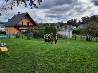 Nach dem alle Personen gerettet, dem Rettungsdienst überstellt und versorgt worden waren sowie die Feuer im Außenbereich erfolgreich bekämpft waren, hieß es Übungsende.