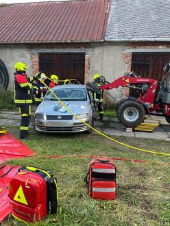 Nach einem kurzen Zwischenstopp im Gerätehaus folgte dann die dritte und letzte Übung für diesen Tag. Gemeinsam mit dem zuständigen Bürgerpolizisten und dem KTW der Johanniter-Unfallhilfe wurden wir zu einem VKU KLEMM auf das Gelände der Stadtscheune gerufen. Vor Ort bot sich ein seltenes Bild: Der Lader des Ortsansässigen Bauhofes fuhr auf dem engen Gelände in die Seite eines PKWs und klemmte damit den Fahrer ein. Nach dem eine Zugangsöffnung zum Patienten für den Rettungsdienst geschaffen wurde und dieser vom Rettungsdienste stabilisiert worden war, retteten wir diesen Patientengerecht. Dazu wurden die Türen der Beifahrerseite entfernt und im Anschluss das Dach geöffnet. Nach dem der Patient mittels Combicarrier aus dem Fahrzeug befreit worden war, konnten wir auch diese Übung erfolgreich beenden.