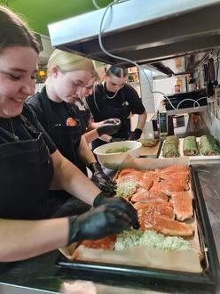 Am Tag des Events begrüßte das Service-Team die Gäste herzlich und geleitete sie zu ihren Plätzen. Anschließend stellten wir uns den Anwesenden vor – ein Moment, der nicht nur Aufregung, sondern auch Stolz in uns hervorrief. Währenddessen bereitete das Küchen-Team die Teller für den Hauptgang vor und sorgte für einen reibungslosen Ablauf hinter den Kulissen. Mit viel Engagement und Liebe zum Detail wurde angerichtet, gekocht und serviert.