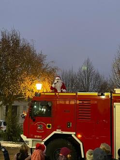 … mit der Feuerwehr - da war das Staunen in den Kinderaugen groß. Mit einem Gedicht oder Lied erfreuten die Kinder den alten Mann und erhielten dann auch ein kleines Geschenk.