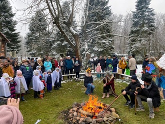 Beim "Waldgeflüster plauderten das Jahr (Tommes), der Dezember (Cassandra), der November (Leon) und der Februar (Josie) aus dem Nähkästchen ... Ja, es war schon ein anstrengendes Jahr, von dem wir uns bald verabschieden. Das brachten diese Vier, unterstützt von den jüngsten Schneeflöckchen des Ortes, wirkungsvoll zum Ausdruck.