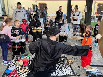 Ab 15:00 Uhr lehrt Musikgeist Robby mit allen Kindern beim gemeinsamen Trommeln den Monstern das Fürchten. Gruselschminken, Monsterdisko und geheimnisvolle Geschichten sorgen neben spukigen Spielen für einen geisterhaften Familiennachtmittag.