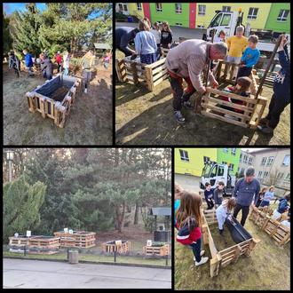 Mit Hilfe unserer Gemeindearbeiter/Hausmeister wurden die Hochbeete aufgestellt und nun heißt es für unsere Schüler und Schülerinnen durch Pflege und Verantwortungsbewusstsein eine gute Ernte zu fördern.