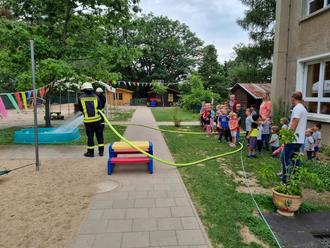 Zum Glück war dieses Erlebnis nur eine Übung, die wir gemeinsam mit der Feuerwehr Hohenbucko vorbereitet und durchgeführt hatten. Auf den Schreck wurde erst mal unser Planschbecken voll gelassen und wir hatten nachmittags jede Menge Wasser zum Matschen und Spielen.