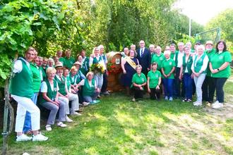 Im Namen der knapp 40 anwesenden Mitglieder des Weinbauvereins nahm Anette Engel die Ehrenurkunde und einen Gutschein zum Kauf von Arbeitsgeräten entgegen. Beim anschließenden Beisammensein stießen alle mit einem Glas Schliebener Wein an und nutzten bei belegten Schnittchen die Möglichkeit zum regen Gedankenaustausch – während der Ministerpräsident die Gelegenheit zu einem kleinen Rundgang zwischen den Rebreihen nutzte. Beim abschließenden Gruppenfoto dankte er noch einmal allen Vereinsmitgliedern für die ausgezeichnete Arbeit.
